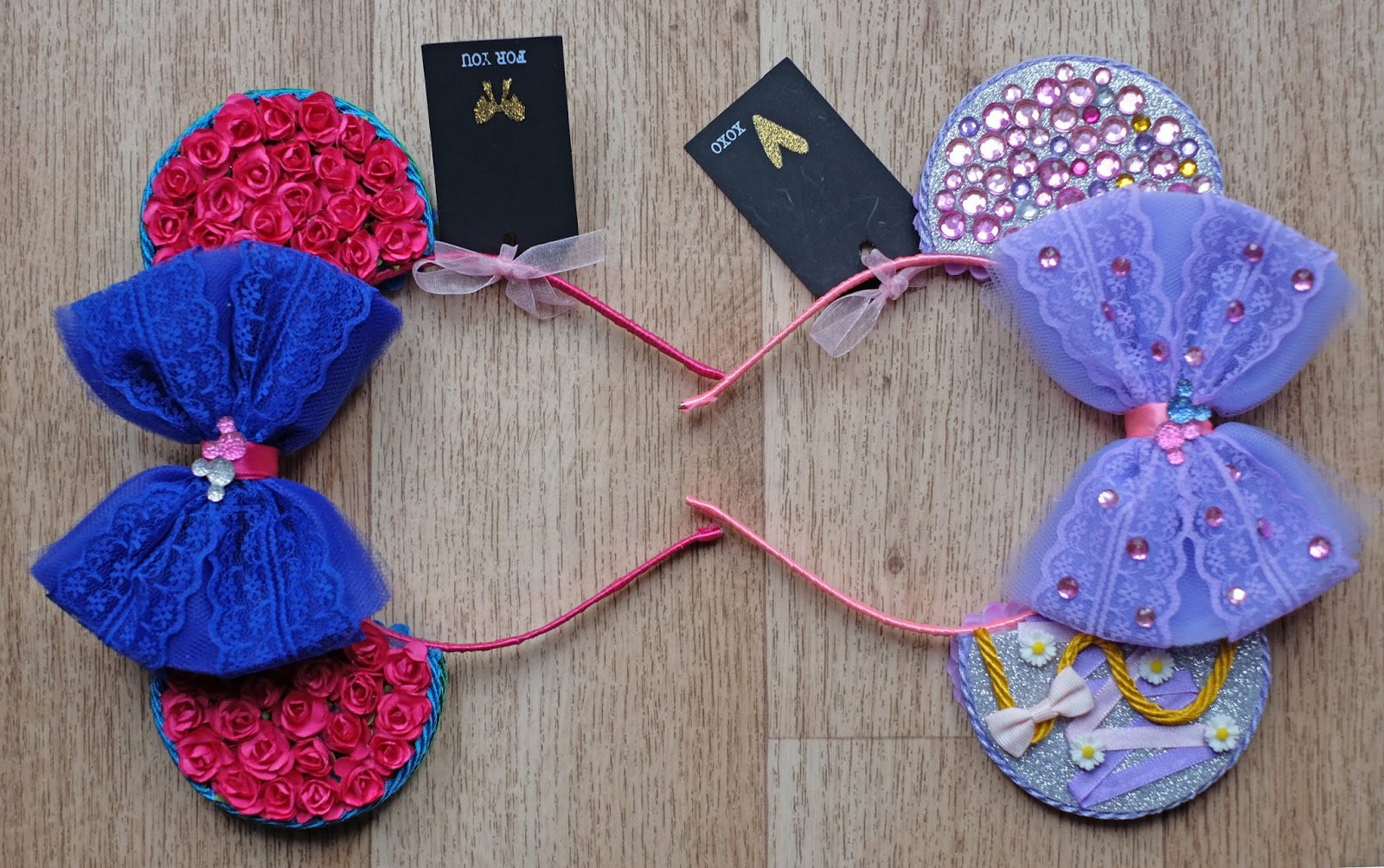 Next up is the floral and glittery Minnie Mouse ears by Sabrina: the owner of Etsy store ‘cheersearsxo’. Amy of ‘Paint Potted’ and Bec Phillips on YouTube, directed me to Sabrina’s store when I was looking for some custom pairs for my August Disneyland Paris trip. I wanted to DisneyBound as Anna and Rapunzel, and Sabrina was a star at making me some wonderful pairs to coordinate with my outfits.