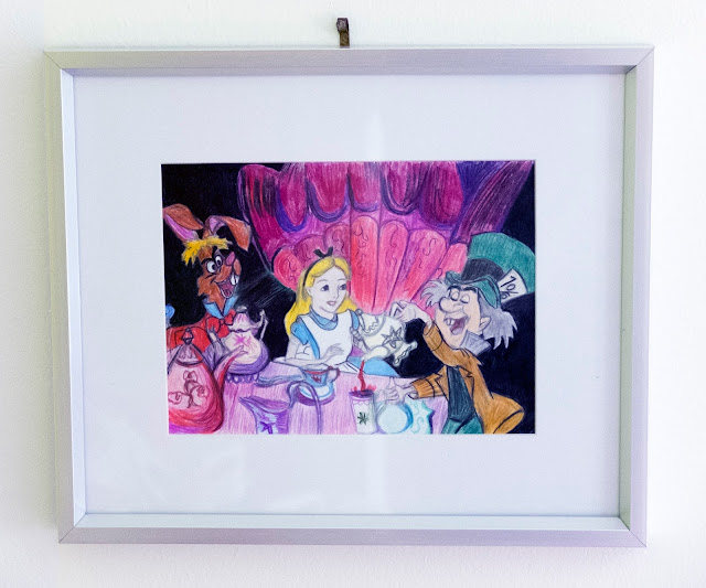I mentioned a few weeks ago on Twitter that I love to paint and draw Disney characters. Two of my pieces are on the wall in my bedroom now: my Alice in Wonderland tea party scene and the Tangled ‘I See The Light’ scene. If you like drawing or painting, have a go at recreating Disney characters. That way, you can adapt the colour scheme and style of the iconic pictures, so that they fit in well with your home interior.