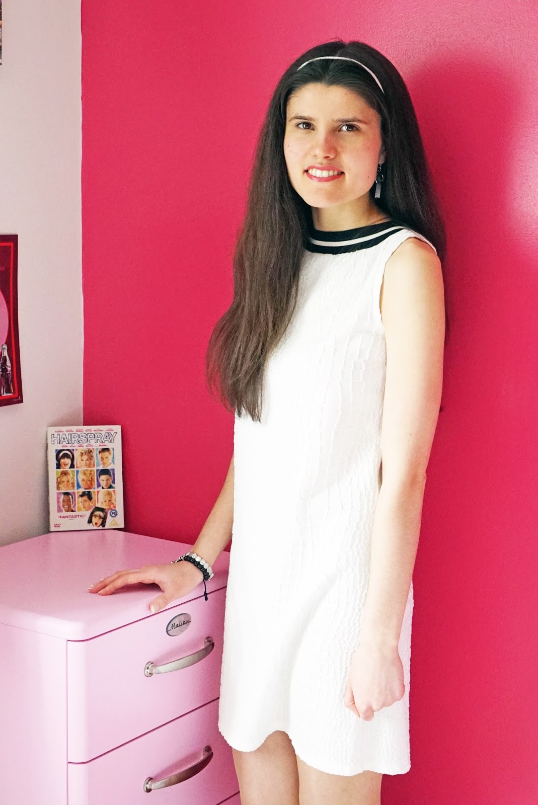 I’ve really enjoyed creating vintage looks for Mouse Chick lately and for today’s post, I wanted to look at a new era: the 60s! What I mean by the 60s is in fact Hairspray (2007 version). Hairspray has some amazing costumes, showcasing lots of 60s trends and I especially love the bold dresses. In the movie finale ‘You Can’t Stop the Beat’, Nikki Blonsky wears a gorgeous white and black sequin dress. Somewhat striking and unlike the dresses in the earlier parts of the movie, I absolutely adore it and I decided to create a look inspired by this specific dress for today’s post.