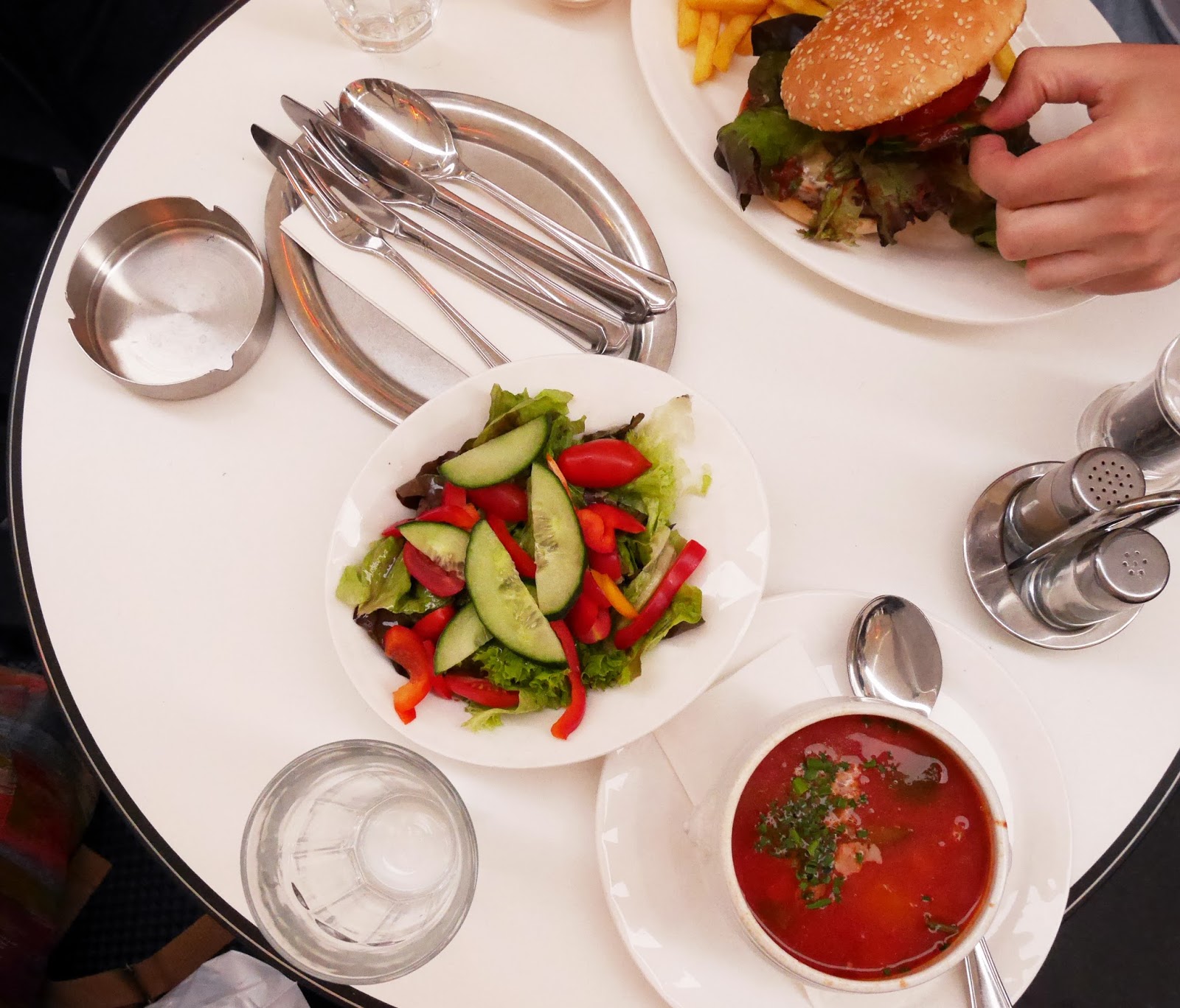 We headed back to the old town for dinner, where I had minestrone soup and salad. I probably should have tried schnitzel or something Viennese, but I didn’t want to take the risk and not like it.