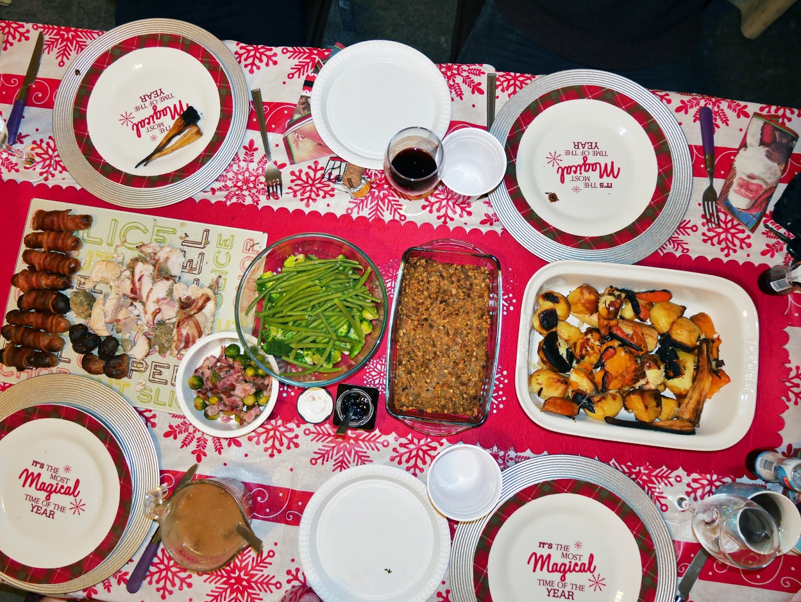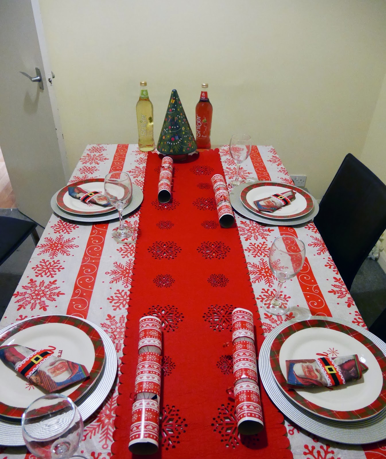I arrived at Alex’s after a hectic day at Uni. As soon as I walked in, I saw the wonderfully decorated red and white-themed table and her brilliant Christmas tree. Alex has a full size Christmas tree in her house, which is really cool for a student house! She even let me hang up the fairy lights, which made me very happy, as I haven’t been able to help decorate the Christmas tree at home this year.