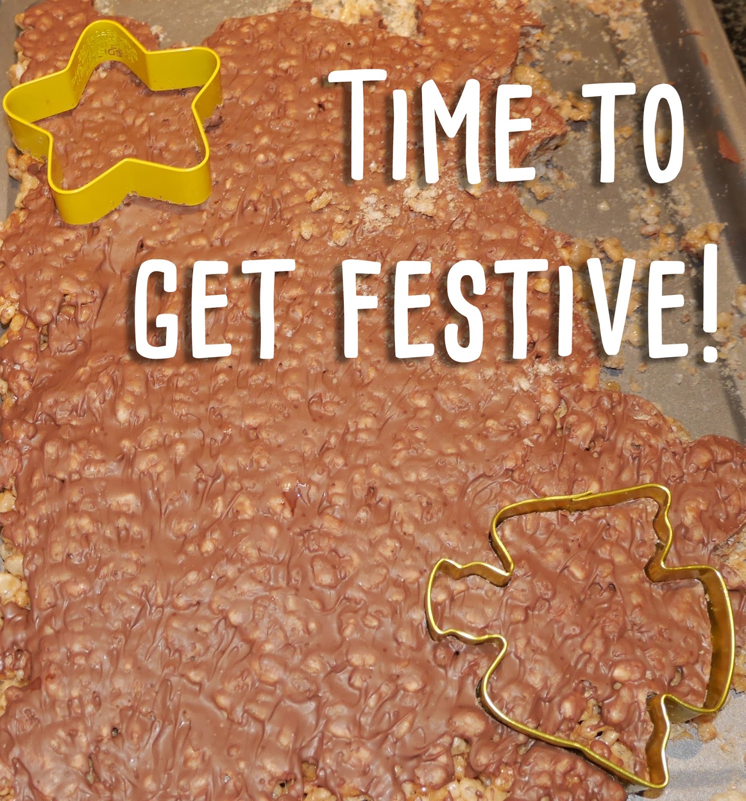 8. When the crispie is ready, get some Christmas cutters and start cutting out the shapes.