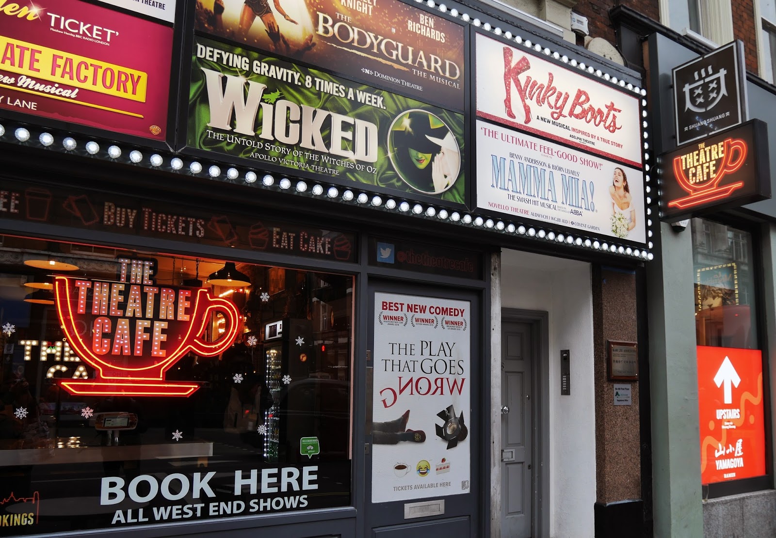 You can’t miss the cafe on Shaftesbury Avenue, there are lots of West End musical posters outside and there’s a Broadway-style ‘The Theatre Cafe’ sign.
