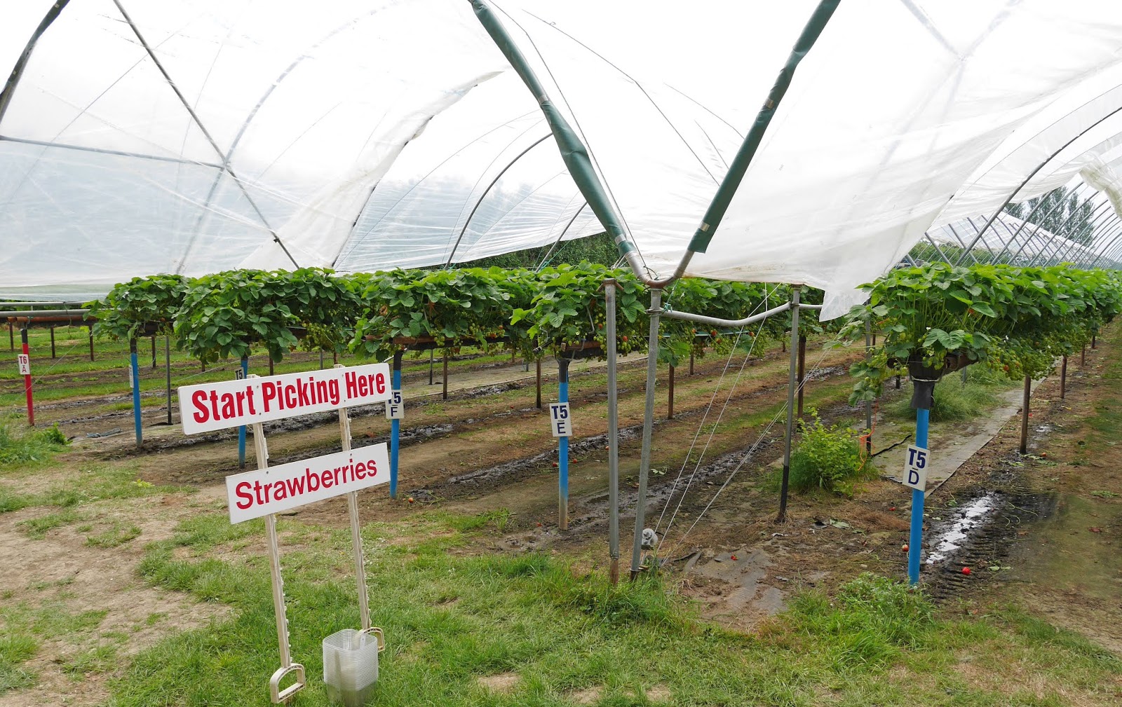 The strawberry picking season starts in June and we were at the fruit farm on it’s opening weekend. Picking your own strawberries is not cheap compared to buying the fruit at a supermarket, but it’s a novelty experience and fun for the whole family, so you quickly forget about the cost of the fruit.